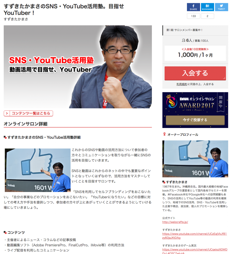 DMMオンラインサロン「すずきたかまさのSNS・YouTube活用塾。目指せYouTuber!」をスタートしました
